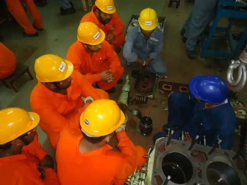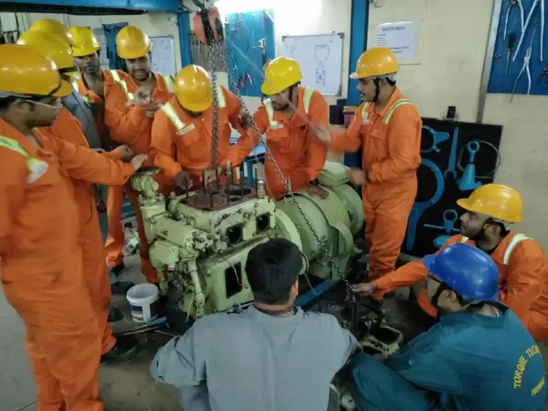 4) Understanding Principle of Operation of Aux. Engine Turbocharger. Taking various clearances such as "K", "L", "M" etc. Dismantling and Assembly of Rotor assembly. Inspection of Thrust Bearing. Trouble Shooting of Turbocharger